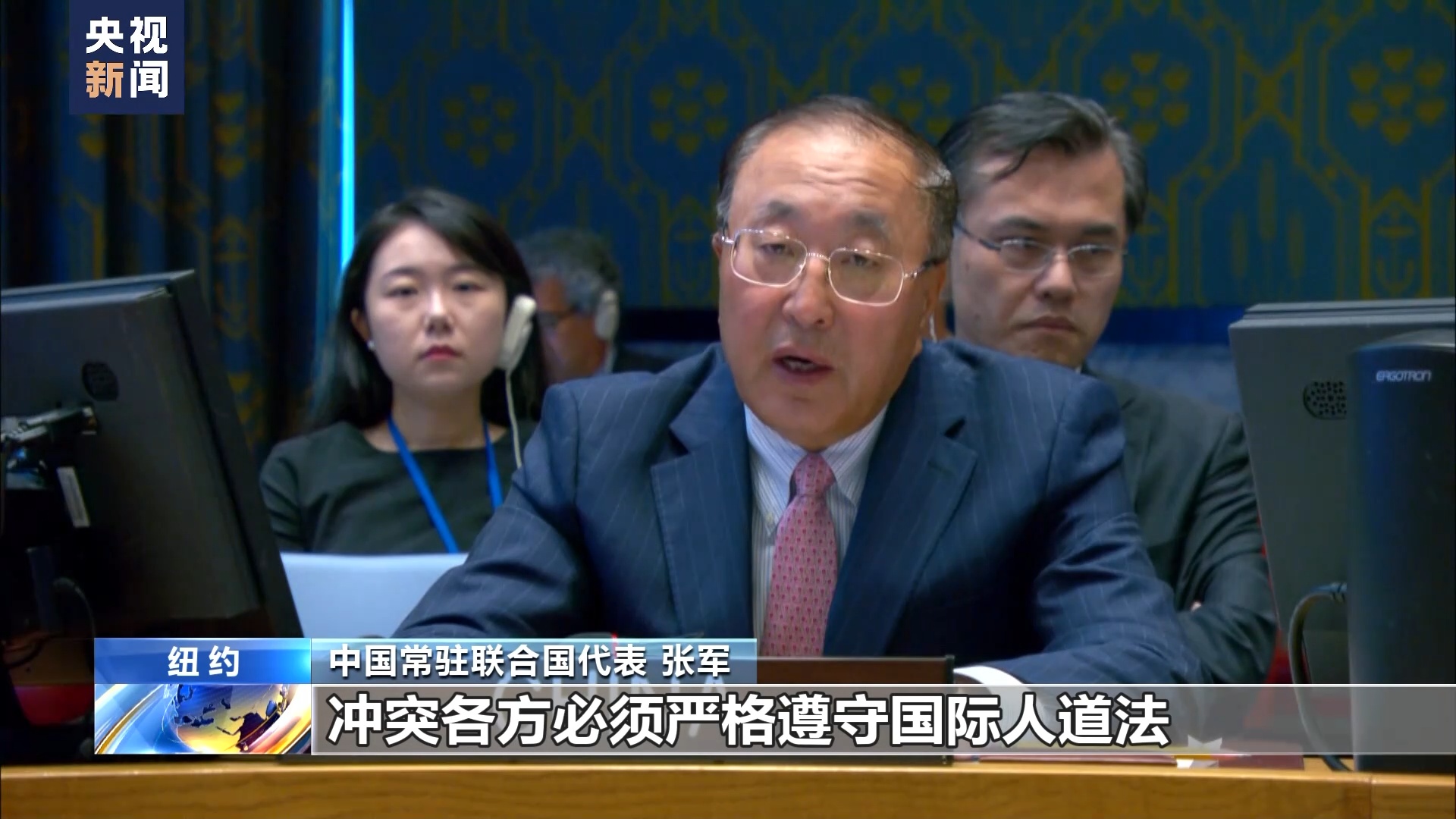 中国常驻联合国代表 张军:冲突各方必须严格遵守国际人道法,遵循必要、区分和对称的原则,避免袭击平民和民用基础设施,保障民众基本生活所需以及生命财产安全。