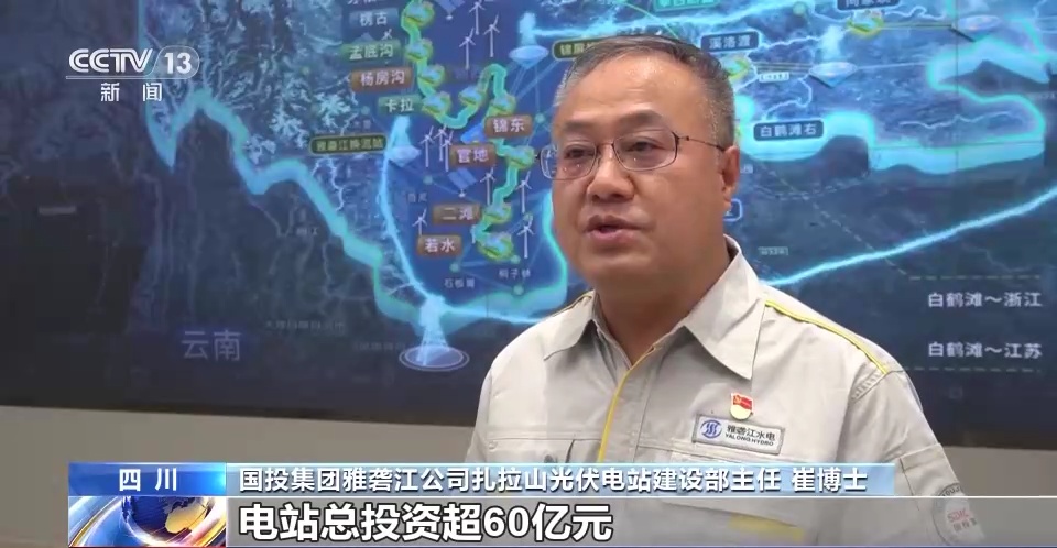 国投集团雅砻江公司扎拉山光伏电站建设部主任 崔博士:电站总投资超60亿元,施工面积超18平方公里,相当于13个北京大兴机场的面积。电站拟安装245万块光伏组件,光伏支架用钢量近6万吨。电站建成后,每年提供的绿色电能可节约标煤约65万吨,减少二氧化碳排放约180万吨。