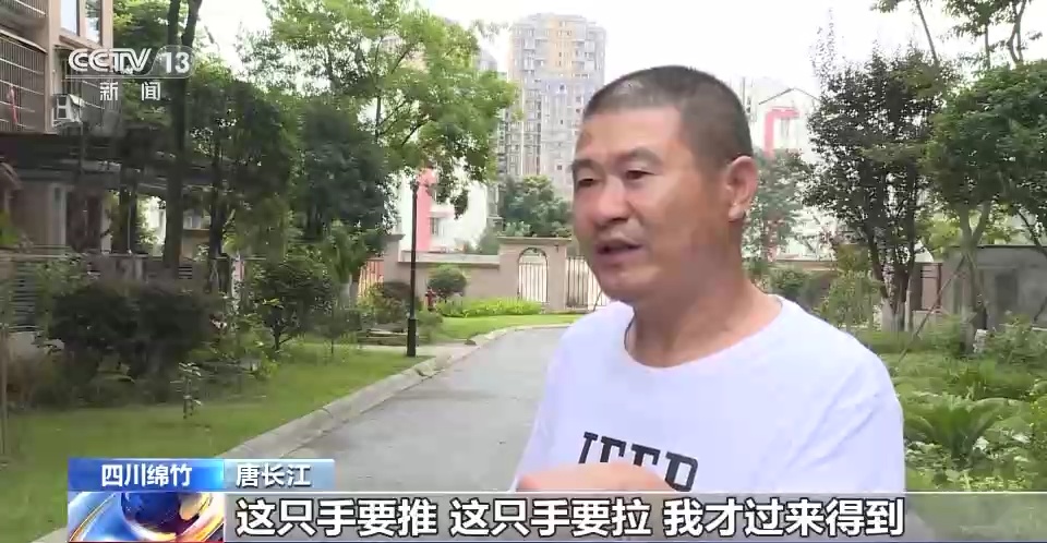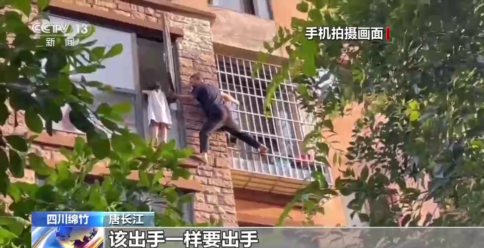 唐长江:窗台外沿只有8厘米左右。这个动作是个连贯性的动作,一只手要推,一只手要拉 ,我才过得来。我当时也担心,也是有点害怕。我就跟她交流,我说你先站好,手扶好,等到叔叔马上过来抱你,这个小女孩也很配合。