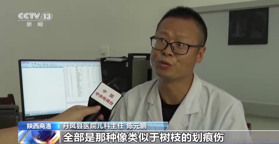 丹凤县医院儿科主任 陈元鹏:他皮肤暴露的地方全部是那种类似于树枝的划痕伤,但是没有大的伤疤。经过医生初步的检查判断,孩子是严重的重度脱水状态。