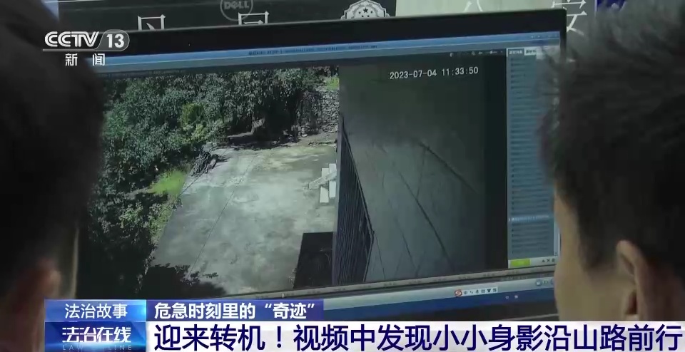 就在众人一筹莫展之际,民警从大量视频数据中发现了一个小小的身影。公共场所画面显示在7月4日中午,疑似失踪的彭彭一个人沿着山路往上走去。