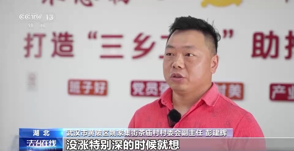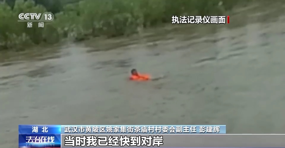 武汉市黄陂区姚家集街茶庙村村委会副主任 彭建辉:没涨特别深的时候就想早点把他救起来,因为我们当时把那个救生衣、救生圈和安全绳都带了。再通过派出所的同志和我们自己村委会,齐心协力地想早点把他救上来,其他也没多想。