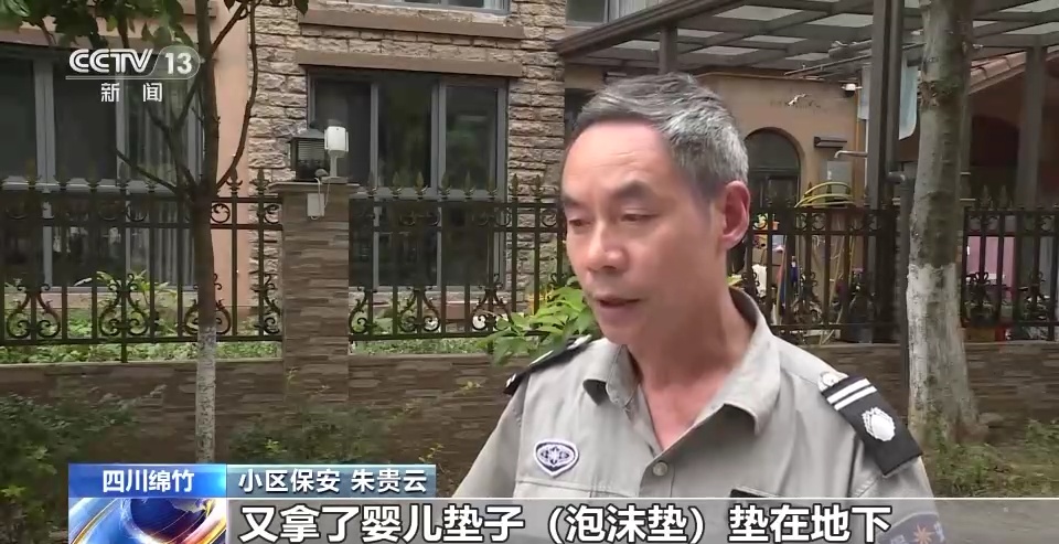 与此同时,几名小区保安也在现场维护秩序,以防惊扰到小女孩发生意外。现场的群众有的拨打报警电话,有的抱出了自家的被子充当临时“保护网”。