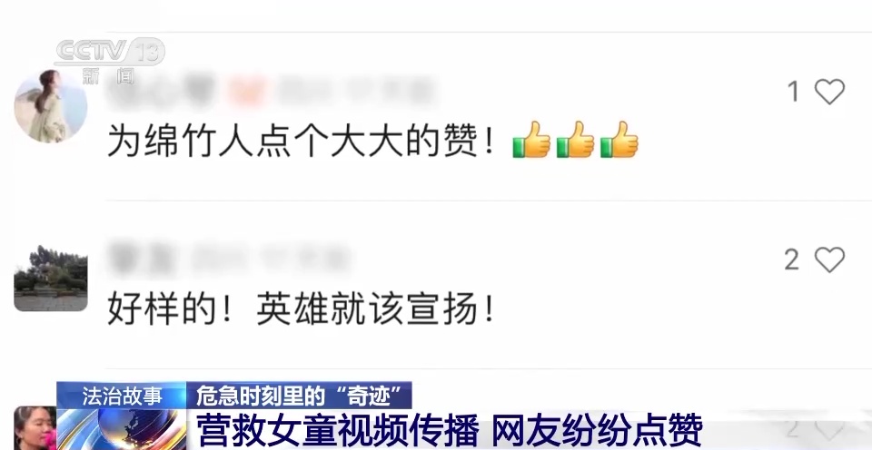 唐长江徒手攀爬救下小女孩的过程,被现场的群众用手机拍了下来并上传到了社交平台,网友纷纷为他点赞。目前,当地有关部门已启动相关程序,将向唐长江授予绵竹市“见义勇为公民”称号。