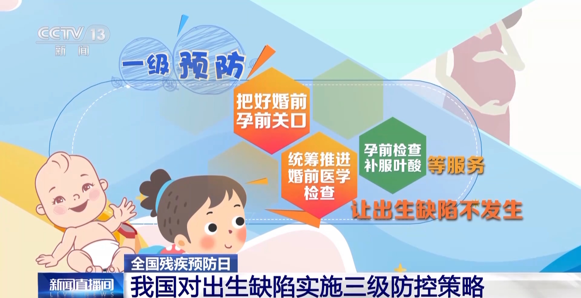 一级预防是把好婚前、孕前关口,统筹推进婚前医学检查、孕前检查、补服叶酸等服务,让出生缺陷不发生。