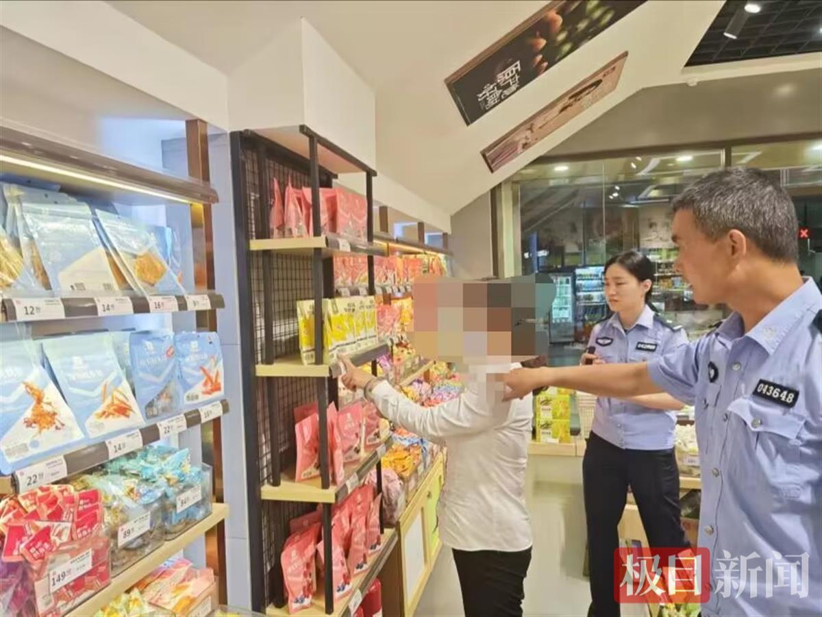接到报案,武汉轨道公安民警立即展开调查。通过调看该零食店内的监控视频,民警发现,当天晚上6时21分许,有一名身穿白色短袖衬衣、黑色长裤,背着黑色单肩包的中年女子在店内“闲逛”。监控显示,该女子趁店员不备,从货架上拿起一袋芒果干装进了自己包里。29秒后,该女子又从货架上拿起一罐松子装进自己的包里。时隔28秒后,该女子再次从货架上拿起一罐松子装进了手提袋。随后,该女子又佯装成顾客在店内辗转挑选商品,然后趁店员不备,溜之大吉。