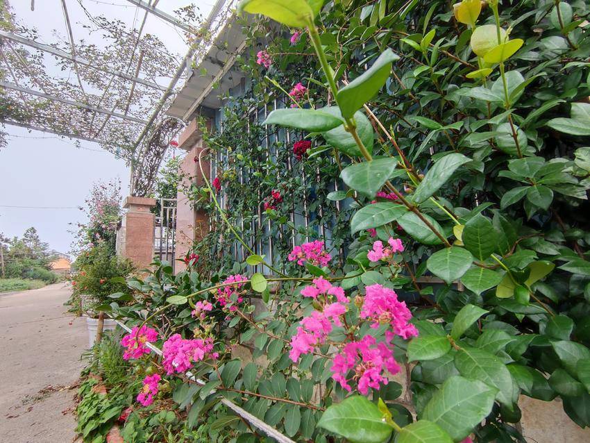 湖北日报客户端讯(通讯员陈保忠)“自古逢秋悲寂寥,我言秋日胜春朝。”8月25日,云梦县城关镇铁西农旅片区,西王村阳光玫瑰园硕果累累,肖李、白合等社区乡村居民房前屋后硕大的柚子挂满枝头,橘子、枣子等压弯枝头,多彩的花儿竞相开放,装点初秋,美丽乡村风景如画,果实飘香,秋花秋果秋色美。