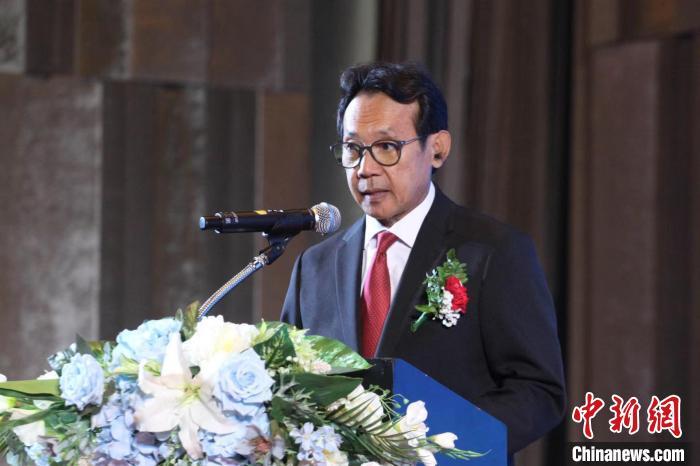 泰国科技部前部长、泰国侨商智库主席邬锑鹏·彩盛在交流会上致辞。记者 李映民摄