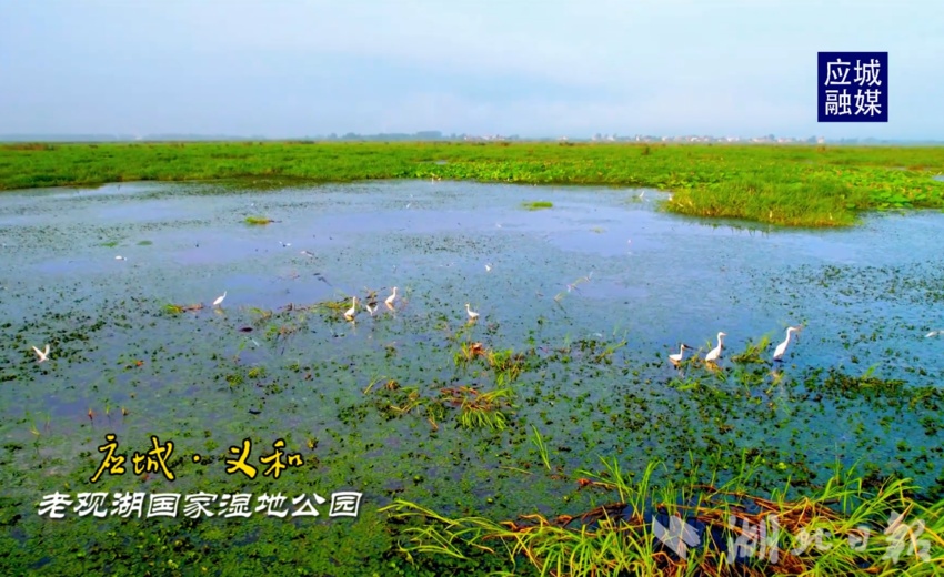 初秋时节,应城市老观湖国家湿地公园里,成群的鹭鸟在湿地内自由飞翔,嬉戏觅食,呈现出一幅秀美生动的迷人景色。
