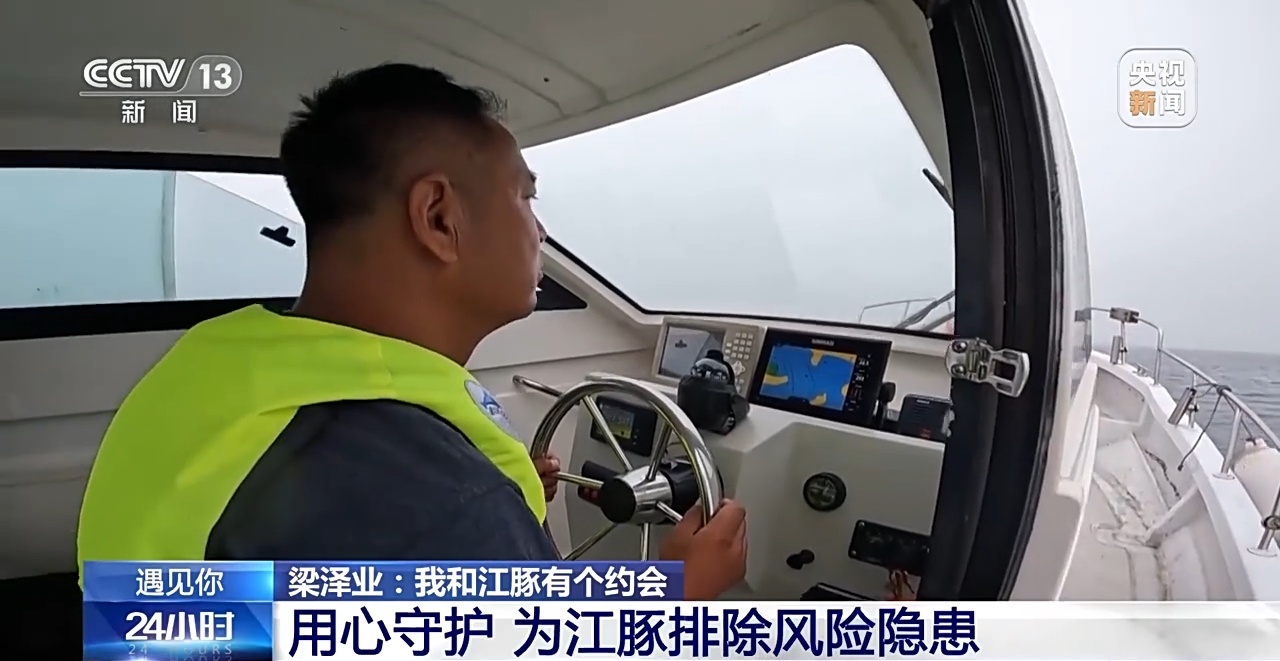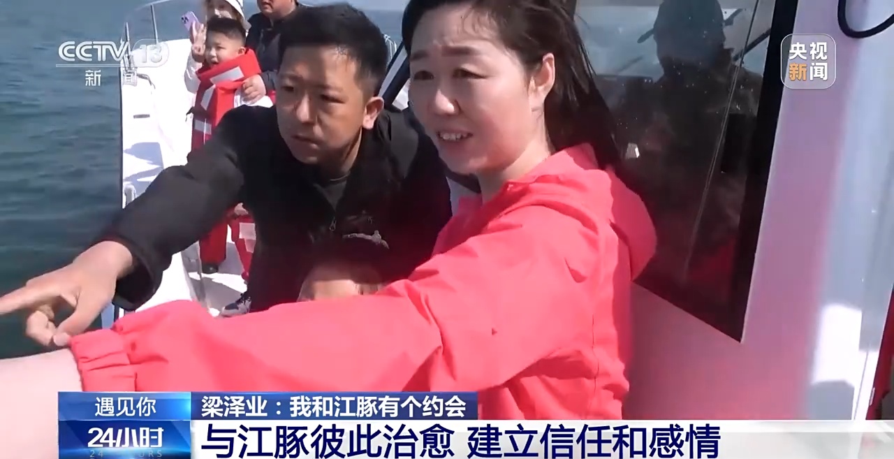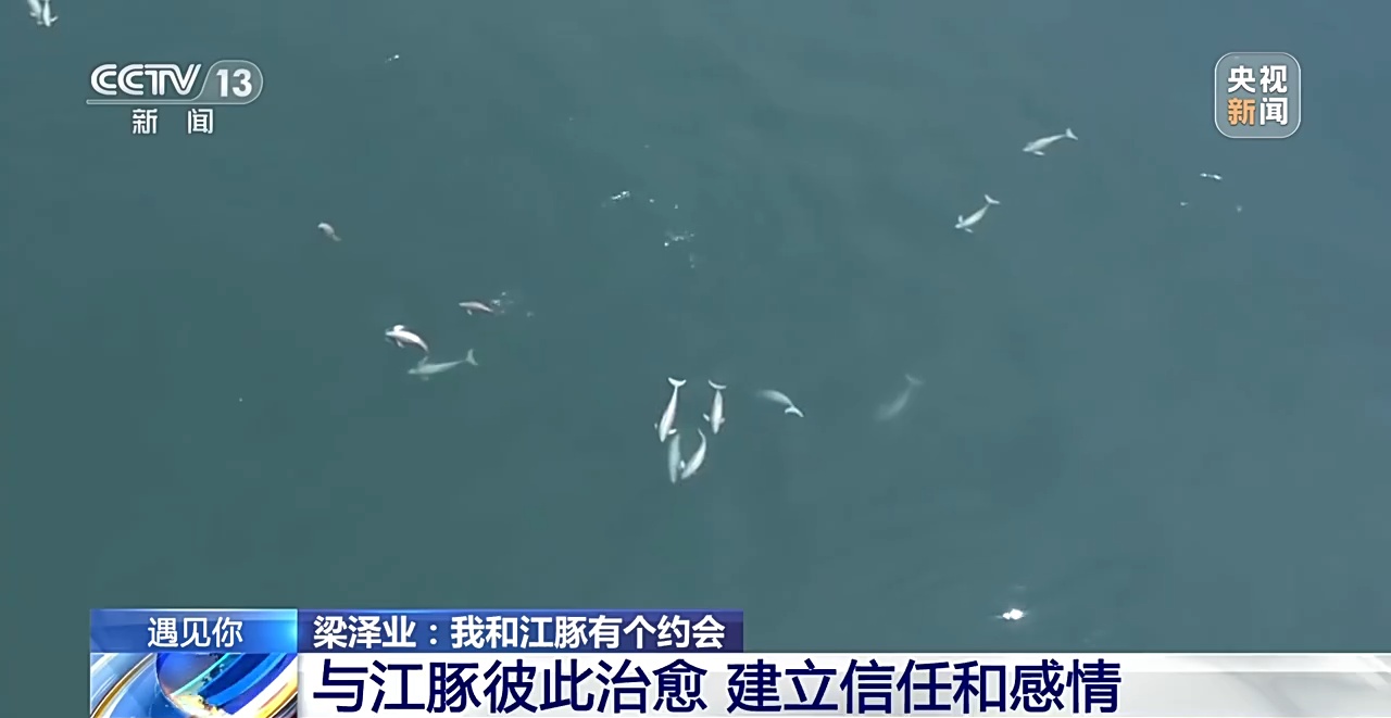 东亚江豚是国家二级保护水生野生动物,由于其数量一直呈下降趋势,东亚江豚已被列入了《世界自然保护联盟濒危物种红色名录》。而江豚们年年的如期而至,是因为这里有一位江豚守护者,他叫梁泽业,从事休闲渔业的他,在十三年时间里,出海多达900多次,追寻上千只江豚生活习性、行动轨迹,爱护、守护着每年来此的江豚们。