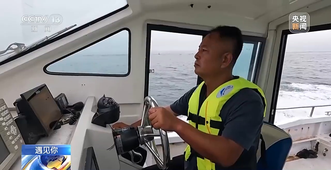 老梁只要看到海面上有浪花翻动,就赶紧拿出望远镜观察。直到“小灰灰”的出现,老梁才松了一口气,脸上的笑容也浮现了出来。