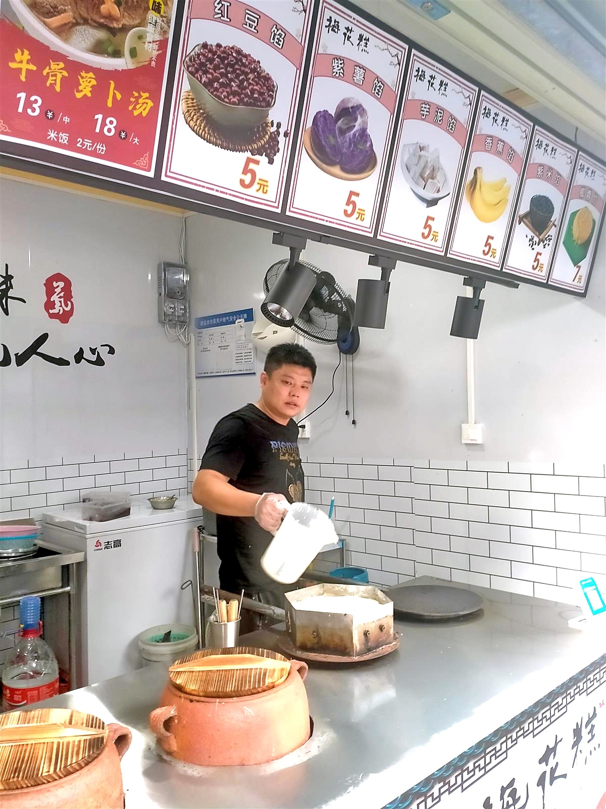 吴昊是大桥本地人,此前白天在一家公司上班,晚上在东湖学院周边流动卖梅花糕,大学生们爱吃,生意还不错。后来公司解散,他便进了夜市门店,还增加了经营品种,“边吃糕,边喝汤,绝配。用煤炉炭火,选粉藕,沙铫子慢慢煨,那叫一个香。”吴昊说,他拜师一名有着30多年煨藕汤手艺的师傅,在夜市现煨现卖。试营业的几天,生意不错,一天可卖500元左右,“大学开学后,生意会更好。多亏街道与综合执法队员、企业为我们着想,建了这个夜市,不然今年都不知道去哪里讨生活。”