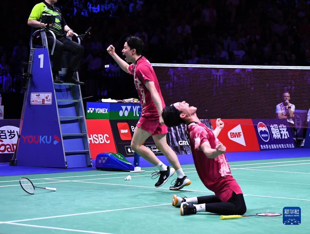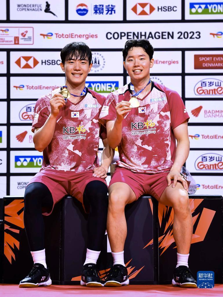 当日,在丹麦哥本哈根举行的2023年世界羽毛球锦标赛男双决赛中,韩国组合姜敏赫/徐承宰以2比1战胜丹麦组合阿斯特鲁普/拉斯姆森,夺得冠军。