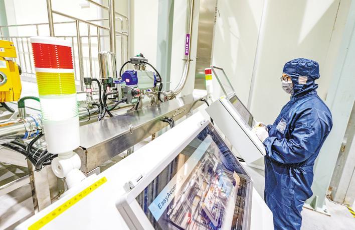 8月28日,楚能新能源(宜昌)锂电池产业园1号电芯工厂内,1000多台套设备高速运转,员工在无尘车间内操作刚投产的设备,一块块新能源锂电池即将经过30多道工序后新鲜“出炉”。 (湖北日报全媒记者 刘曙松 通讯员 岳黎 摄)