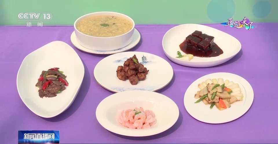 8月28日,杭州亚组委后勤保障部就杭州亚运会赛时餐饮服务筹备的最新情况进行了介绍。目前,组委会已制定了兼具国际视野和浙江特色的亚运村运动员菜单,各分村在遵循主村菜系设置的基础上,结合实际编制完成分村菜单。记者在杭州亚运村运动员餐厅中看到了部分展示菜品,其中有代表性的杭帮菜东坡肉、宋嫂鱼羹,也有葱香肋排、京葱爆牛肉等不同风味菜品供运动员选择。