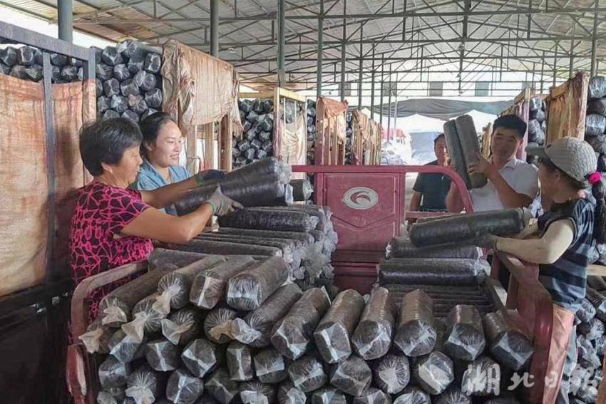 潘口乡引进能人在该乡龙王沟村创办食用菌基地,通过“产业链+企业+村委会+村民”三方协作模式,龙头企业统一经营,村集体挣场地租金,农民务工挣薪金,实现脱贫成果再巩固、集体经济上台阶、村民收入稳增长、村企共建促发展的良性互动。基地负责人文龙翠介绍,现有日产羊肚菌栽培种2万棒全自动生产线和日产平菇栽培种1.2万棒、羊肚菌营养袋2万袋交叉使用全自动生产线各1条,年可生产羊肚菌栽培种100万袋、营养袋100万袋,平菇栽培种40万棒。