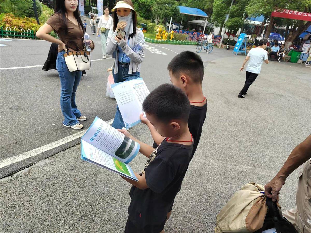 活动现场,工作人员不仅向游客们发放了由湖北省农业事业发展中心组织编印的《湖北省长江珍稀水生野生动物科普宣传及救护手册》,还现场向游客们进行了水生野生动物科普知识讲解并回答提问,在科普展板前,不少青少年学生驻足观看。