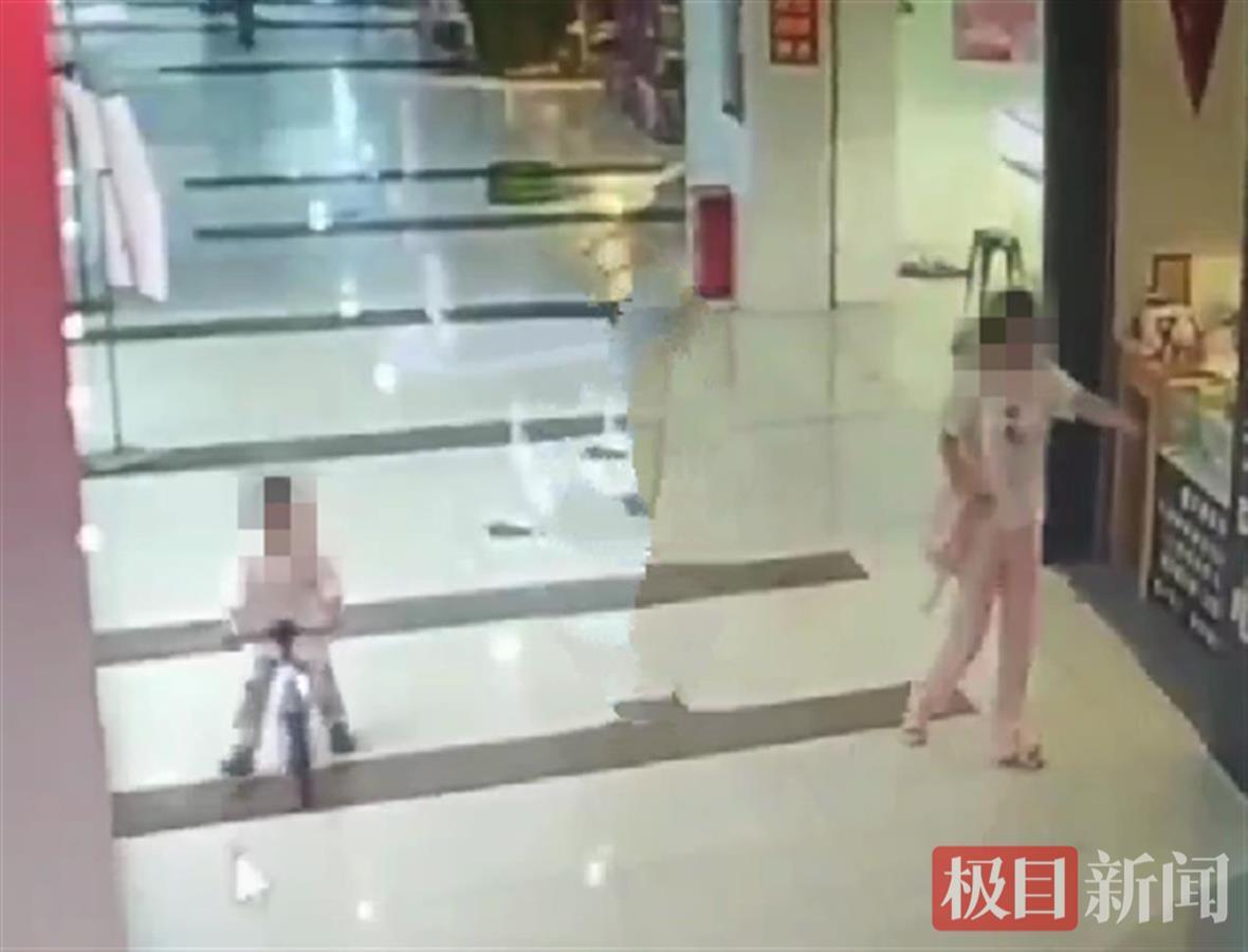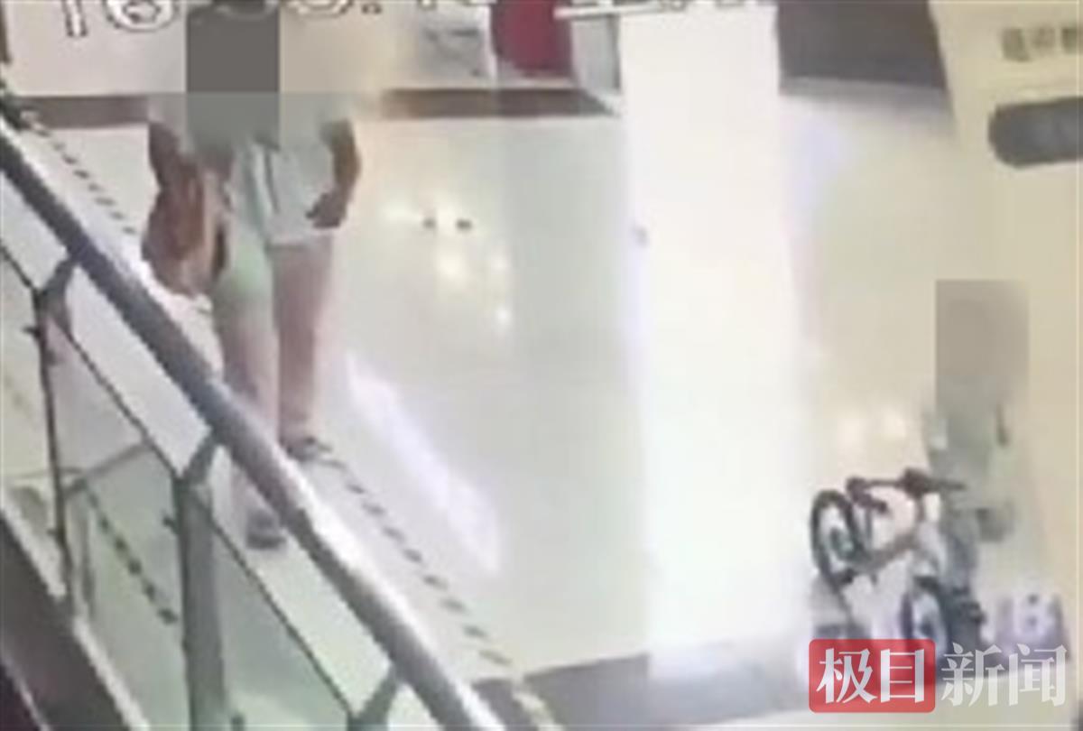 从监控视频中可以看到,曹某正带着一个小男孩在商场逛街。经过儿童平衡车展览台时,小男孩坐上了一辆粉蓝色的平衡车,曹某见四下无人,竟然带着小男孩将平衡车直接骑出门店所在的二楼,并一路来到商场大楼外的停车场,最后骑上一辆电动车迅速逃离。