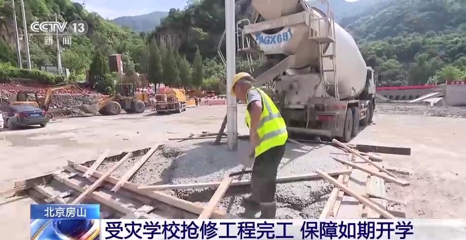 受前段时间的特大暴雨灾害天气影响,北京市房山区多所学校不同程度受损,为保障按时开学,当地组织多方力量开展抢修作业。