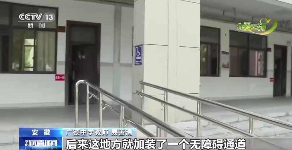 广德中学教师 易善清:教室就在这边,当时有这个台阶,后来这地方就加装了一个无障碍通道,包括这个无障碍的扶手。我们的卫生间,也是后来专门改造的。
