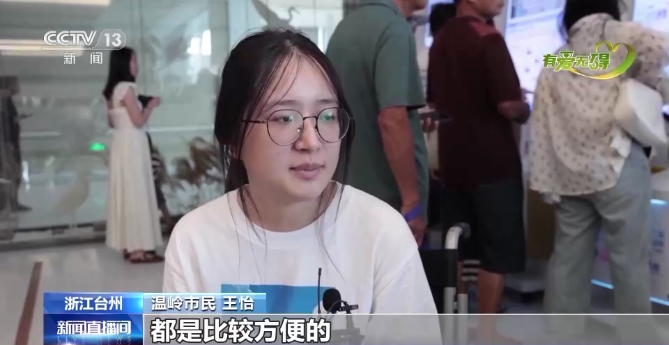 在温岭市第一人民医院,记者看到前来就医的市民王怡。前不久她意外扭伤,原本独自前来有些担心的她发现,这里不仅有2小时内免费使用的共享轮椅,还有十几台无障碍自助服务机,即便坐在轮椅上,也能很快完成挂号、预约、缴费等各项操作。