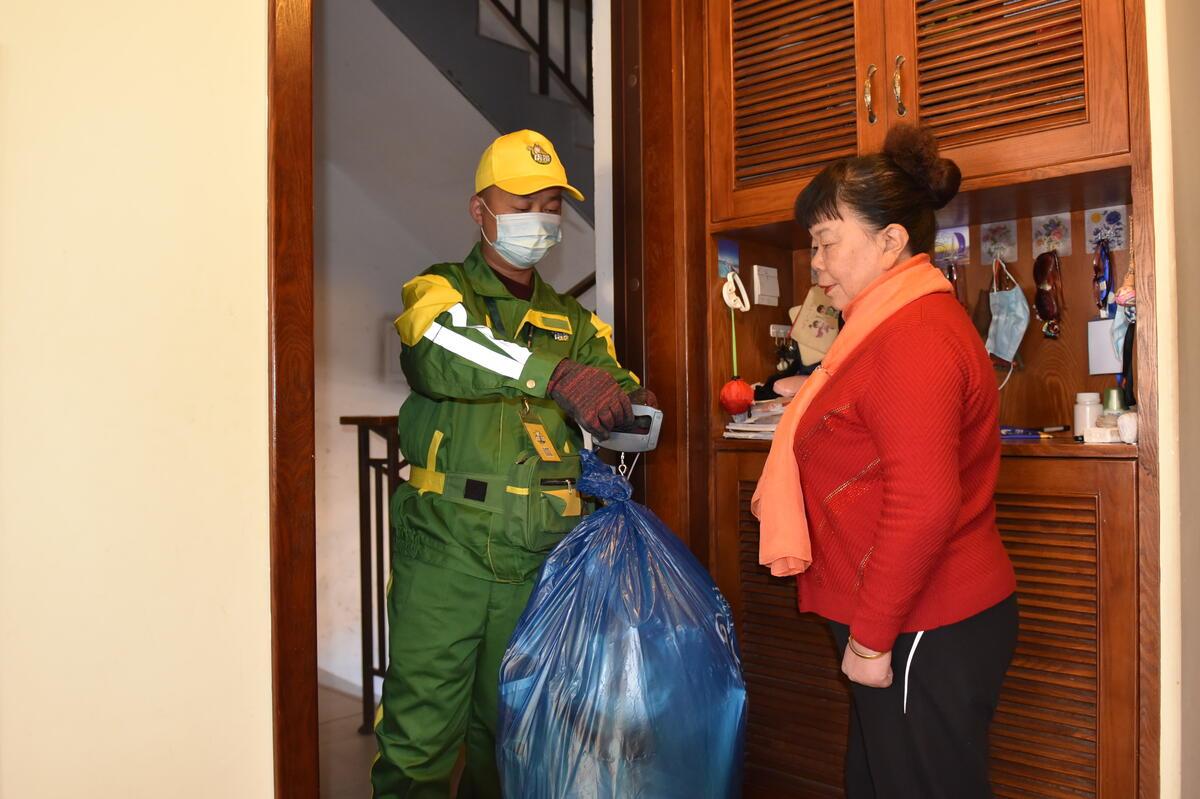 在居民赵阿姨家中回收可回收物 “虎哥回收”供图