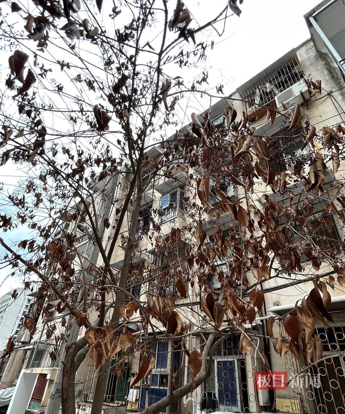 汉阳区十里景秀社区工作人员告诉记者,去年因小区里的树根系太过发达,导致出现了下水管道破裂的情况。因此在老旧小区改造时,施工单位修复了下水管道,并向汉阳区园林局报备移走这些树木。但经过相关工作人员的现场勘查后,这几棵树并没有被列为危树,最终只是对树木进行了修剪。