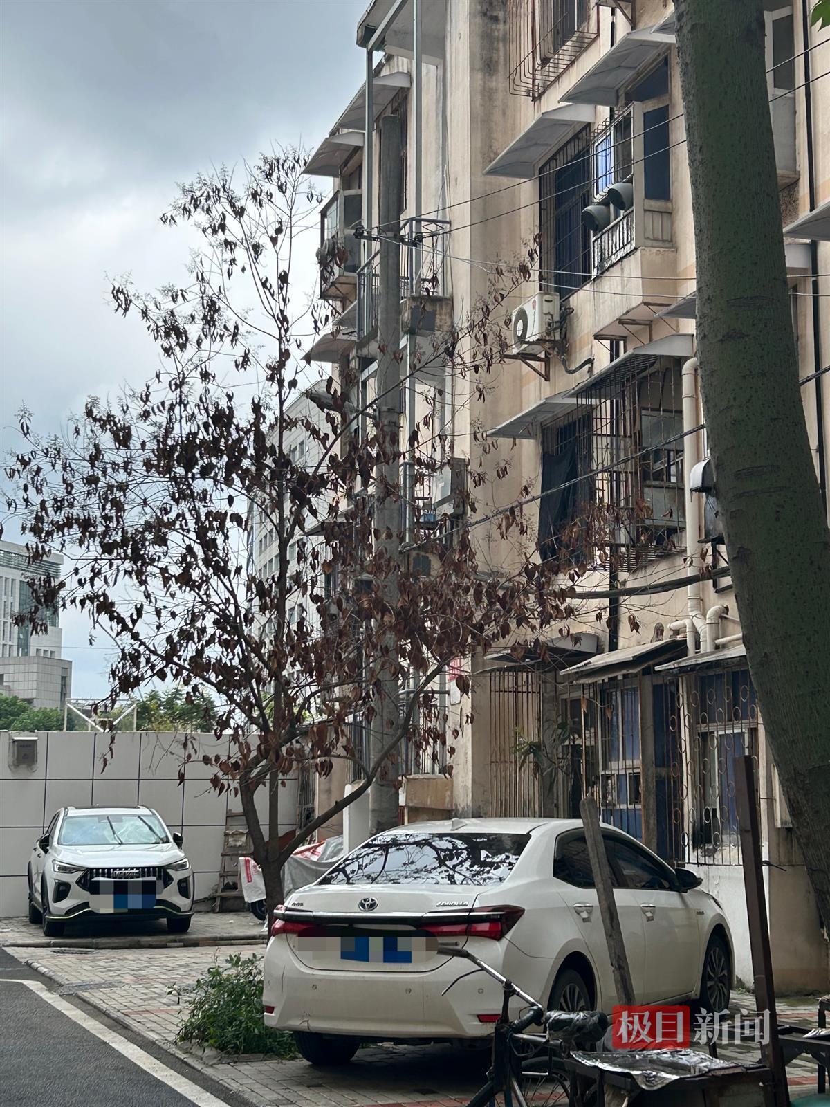 记者观察到,家属院里只有两栋居民楼,因为院内面积小,小区内停放的车辆有限。家属院的楼房最高是四层,而小区内最高的一棵树已经超过了房子的最高高度。