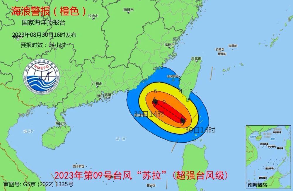 超强台风“苏拉”将掀起巨浪狂涛,福建、广东近岸海域海况恶劣。国家海洋预报台30日下午继续发布海浪橙色警报,并发布风暴潮蓝色警报。