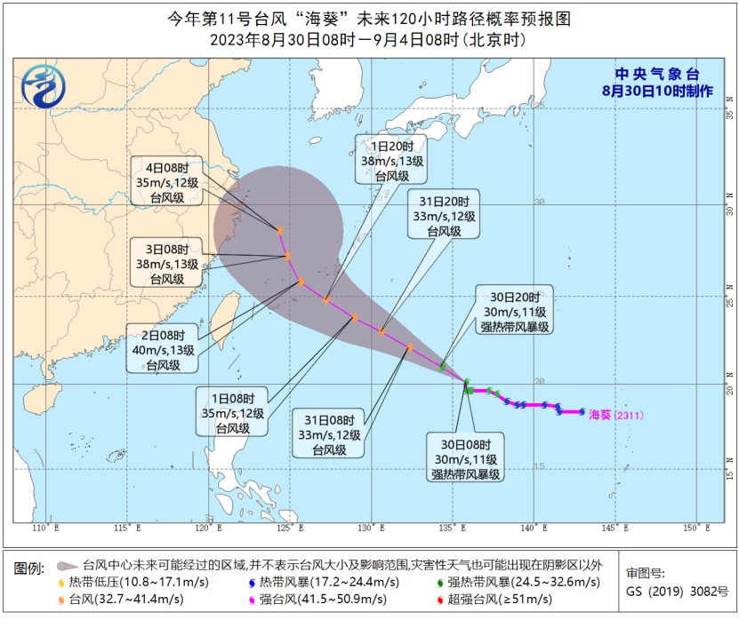 台风“海葵”将向西偏北方向移动,9月3日前后可能影响东海南部海域。