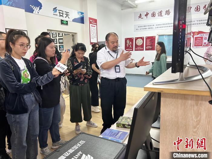 安天科技集团党委书记、董事长肖新光为媒体采访团讲解。 史轶夫 摄