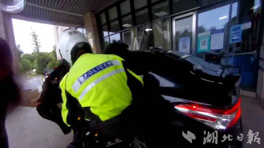 接警后,蔡甸区交通大队汉警快骑中队队员肖诗威、宗伟立即前往报警地点接应聂先生。在蔡甸大街茂盛路口附近,民警看到了聂先生驾驶的黑色小车。“快,跟我走!”民警立即拉响了警笛,开启了绿色通道,示意驾驶人跟紧警车走。