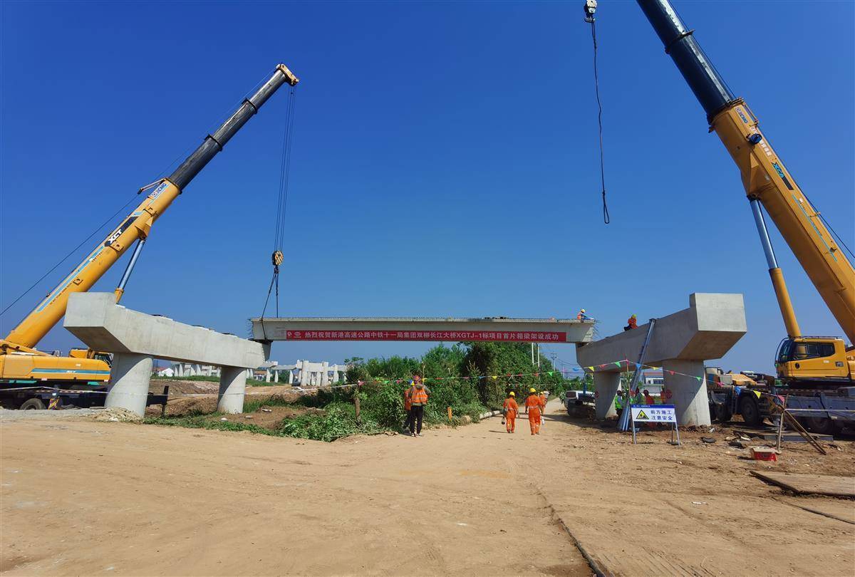 湖北日报讯(记者林晶、通讯员毛积科、刘若梅)8月31日上午9时许,武汉新洲区钱寨村施工现场,两台吊机稳稳地将一片长25米、重81吨的箱梁架设在两个矮墩之上,标志着双柳长江大桥及接线工程首片箱梁成功架设,全线开启上部结构施工。