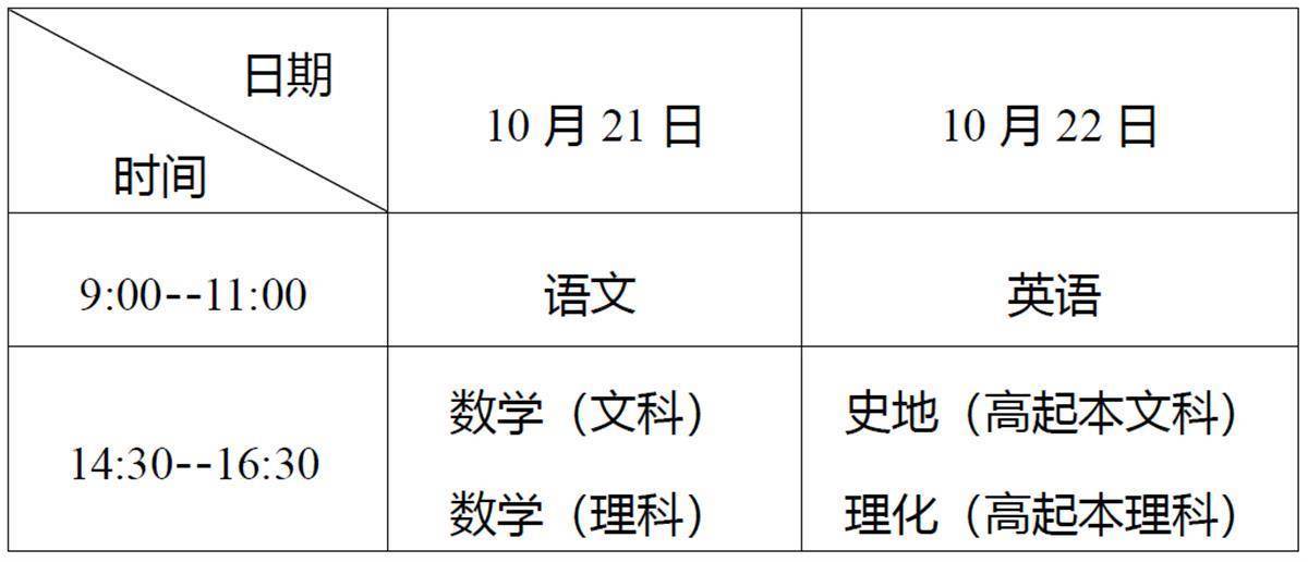 1.高中起点升本、专科考试时间表