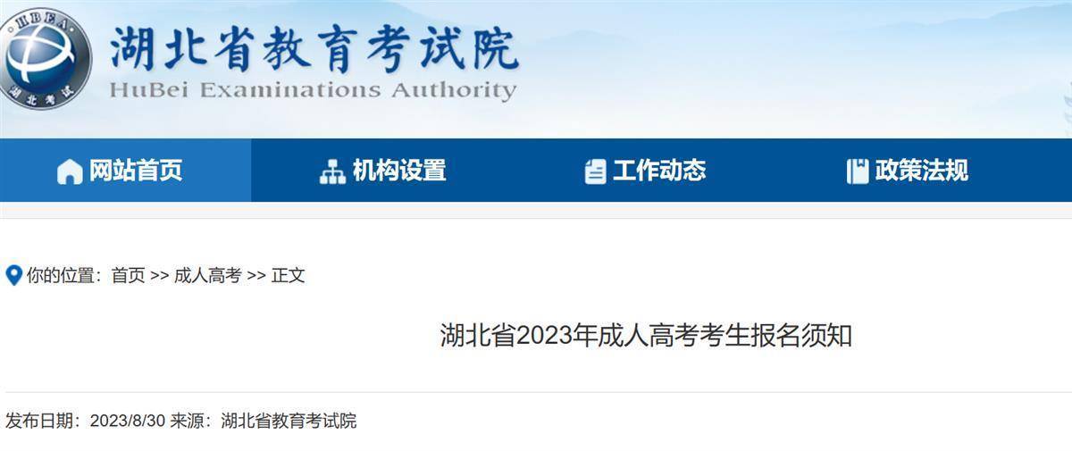 湖北日报讯(记者方琳、通讯员沈考)8月30日,湖北省教育考试院发布公告,2023年全国成人高校招生统一考试定于10月21日-22日进行,请广大考生关注考试安排和报名工作等有关事项。