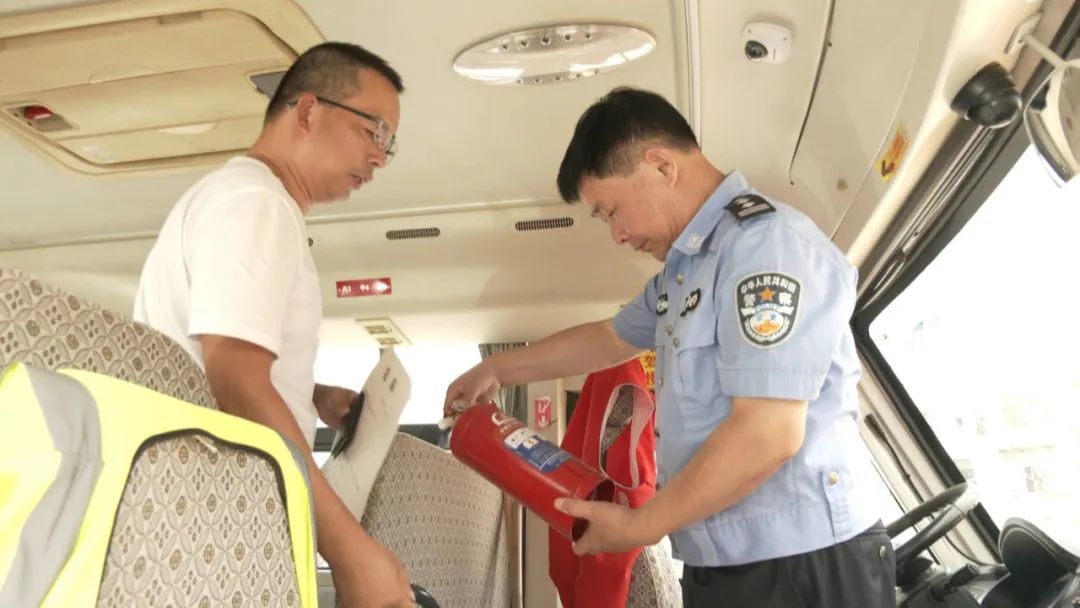检查中,检查组重点检查了校车安全锤、灭火器等安全设施配备、驾驶员有关证件及相关工作台账等情况。