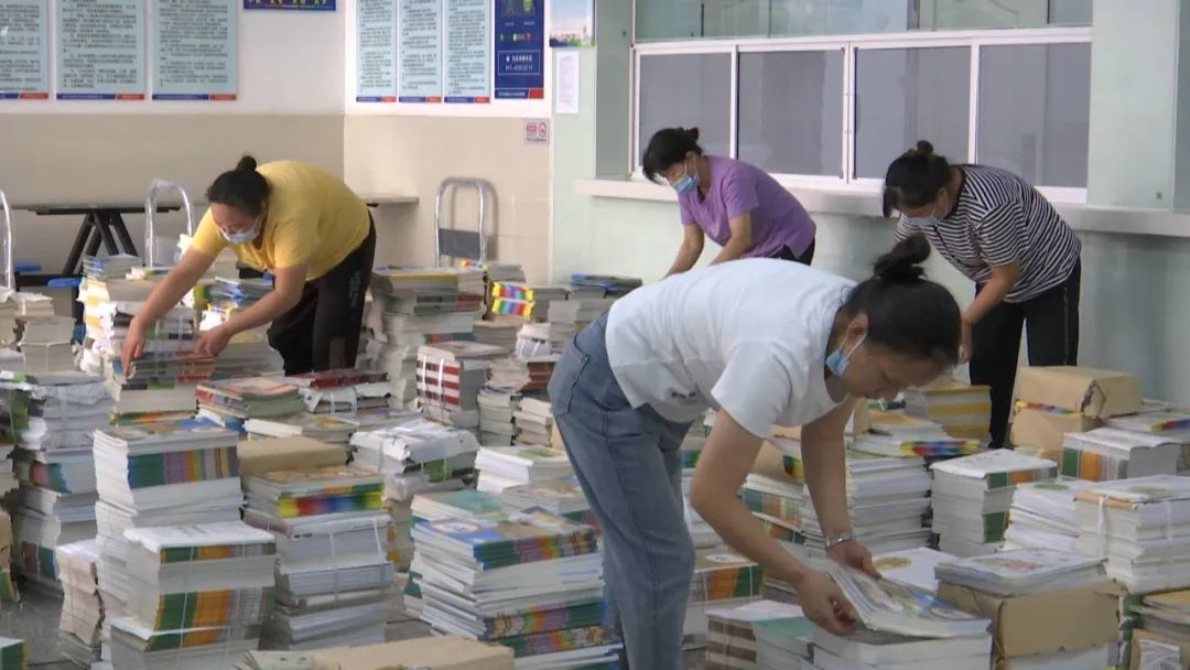 学校一角,崭新的教材已按照不同年级进行了分类整理,整齐摆放,等待着与木兰学子相逢。