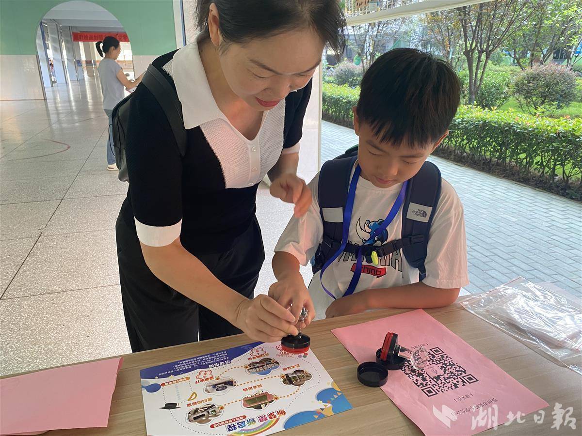 鄂州市实验小学一年级的新生们,领取了专属的新生入学纪念牌和入学游园手册,开启集章之旅:国旗广场印下“立德”章,博雅大厅印下“立志”章,艺术长廊印下“尚美”章,阳光运动场印下“求真”章,班主任为他们印下“启智”章。孩子们沿着路线图找到了自己的教室,一笔一划写下自己的名字,再亲手将写有自己名字代表着希望的果实张贴到班级生长树上,茁壮成长的满满仪式感凝聚起新集体“心”力量。