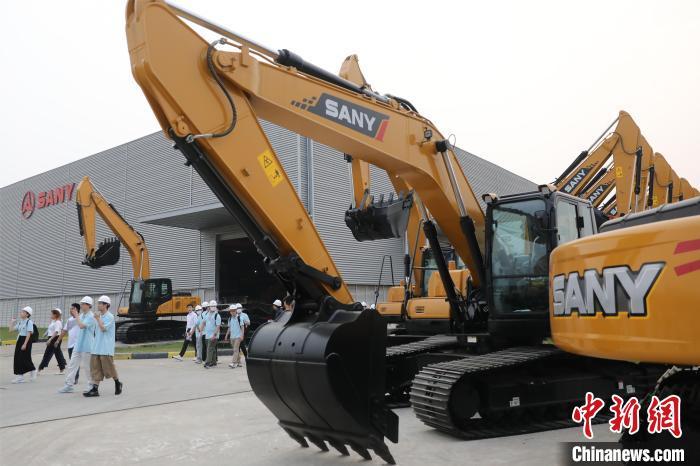 7月6日,来自香港的一个参访团在位于印尼KIM产业园的三一重工“灯塔工厂”参观。中新社记者 李志全 摄