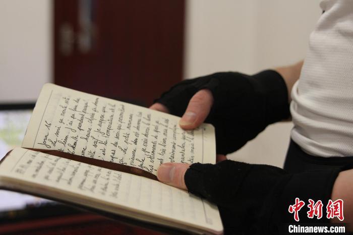 8月30日,四川大学法籍教师吉米展示其在骑行之旅中记录的旅途见闻。中新社记者 王利文 摄