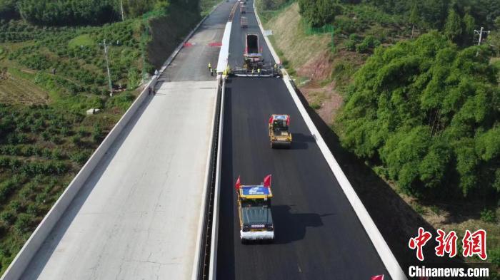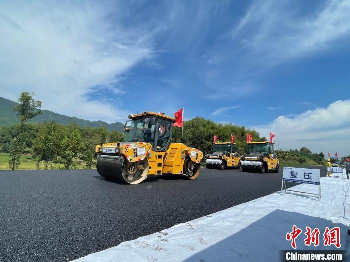 中新网重庆9月1日电(张旭)记者1日从重庆高速公路集团有限公司获悉,当日,在位于重庆市梁平区的梁开高速公路项目施工现场,建设者们在重庆高速公路建设中首次实施路面无人摊压集群施工。