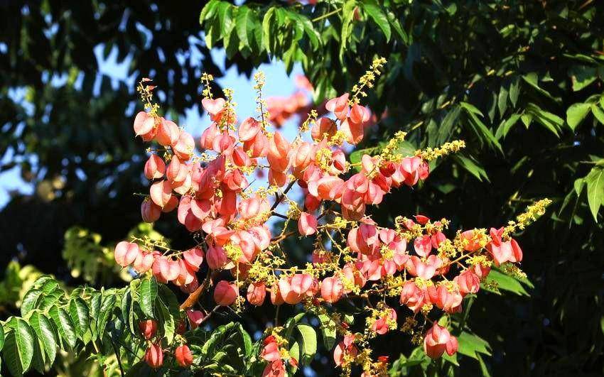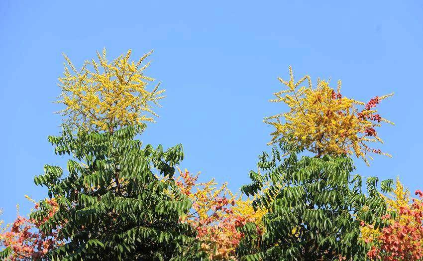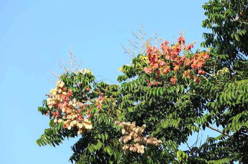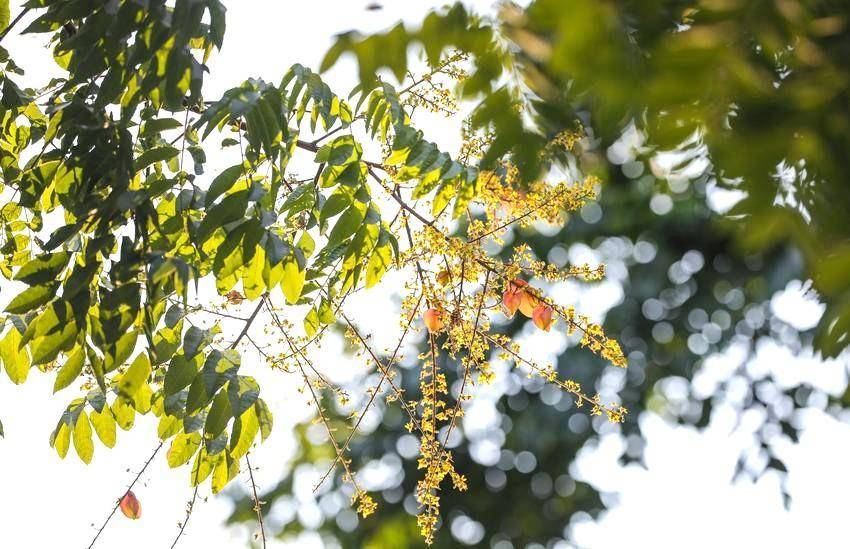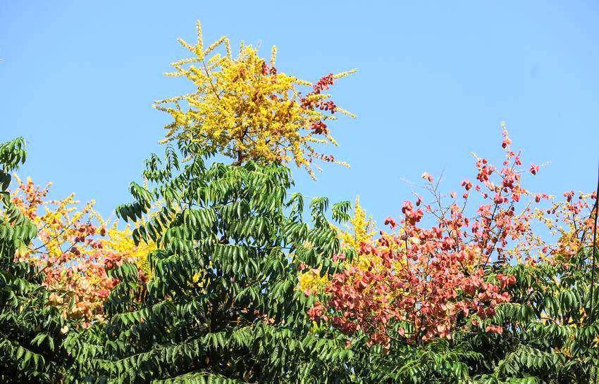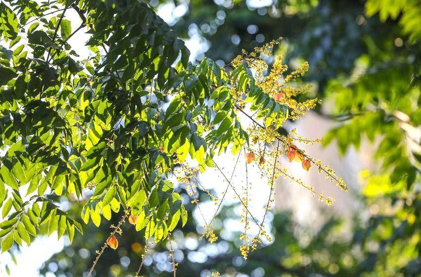 走在汉阳城市的道路上,不经意间抬头一望,栾树正悄悄的开花了,一簇簇黄色的花朵已绽放枝头,像灯笼一样的果子颜色各异,花果共荣,衬着天空独有的湛蓝,给这个秋日增添了一道亮丽的风景线。