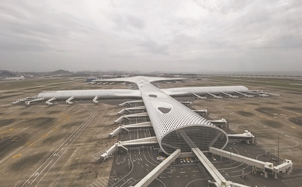 9月1日中午12时起,深圳宝安国际机场暂停航班运行,可转场的航空器均已飞离,廊桥机位清空。新华社发
