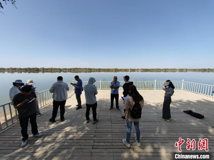 9月1日,“四季看新疆第二季”之“沿着河湖看新疆”主题采访活动采访团走进巴音郭楞蒙古自治州尉犁县罗布淖尔国家湿地公园进行采访。(中新网记者 王小军 摄)