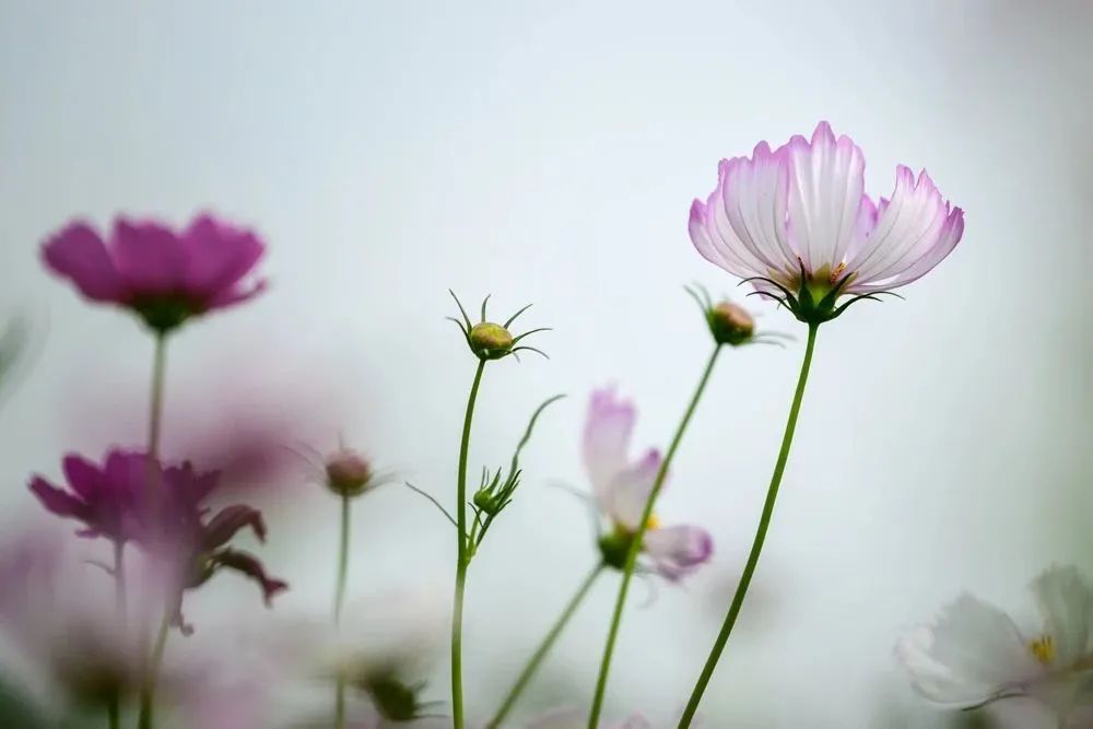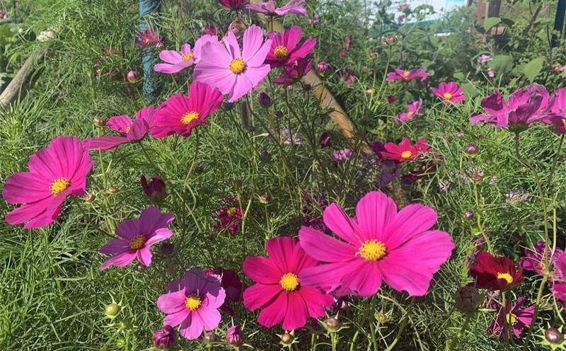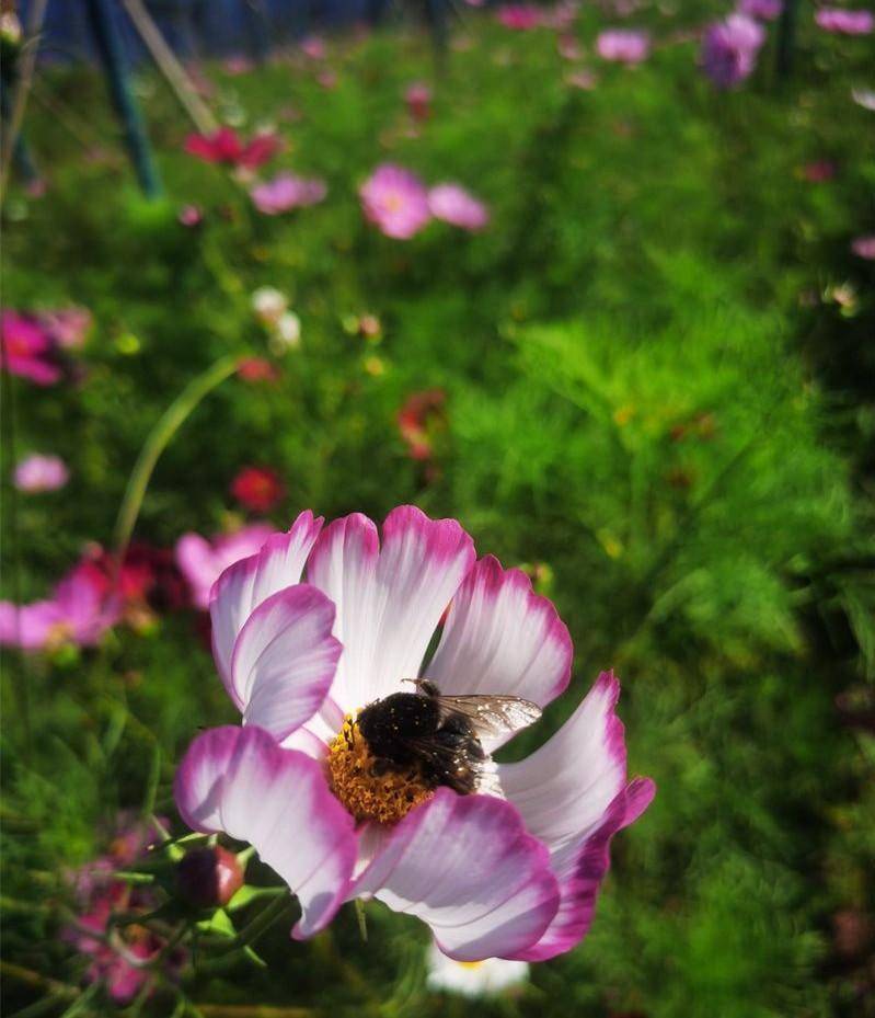 格桑花寓意幸福和美好时光,花杆细长、花瓣较小,在微风吹拂下轻快自如地摆动着。花开引蝶来,花开引蜜采,花开引人来。