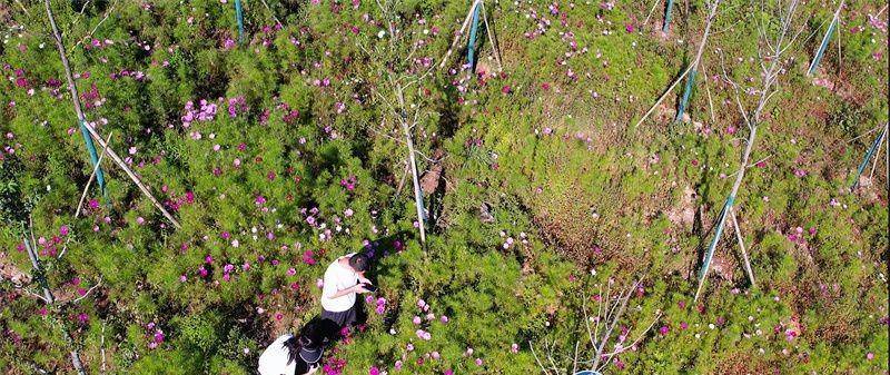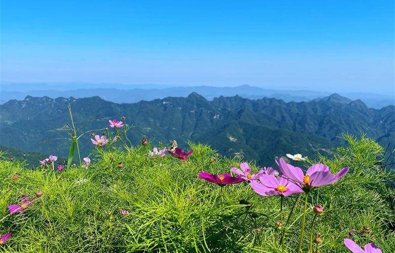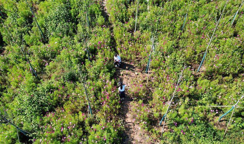 千亩格桑花田吸引游客纷纷来赵湾“森林氧吧”打卡拍照,住民宿、吃农家饭、享受山间美景。