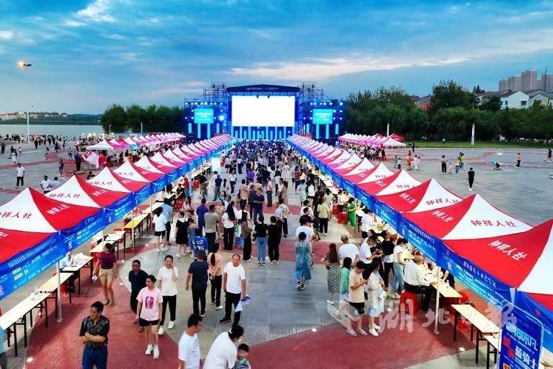 湖北日报客户端讯(通讯员任凯、钟国庆、陈汝旭)9月2日晚,夜幕降临,钟祥市体育馆广场上歌声飞扬、人来人往、热闹非凡,2023年钟祥市第二届“就业招聘夜市”上精彩的文艺节目,主持人宣读的企业岗位信息,吸引了3600多名求职者进场。