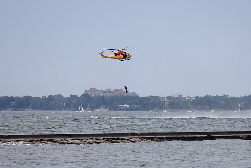 加拿大皇家空军一架CH-146“狮鹫”直升机进行水上搜救表演。
