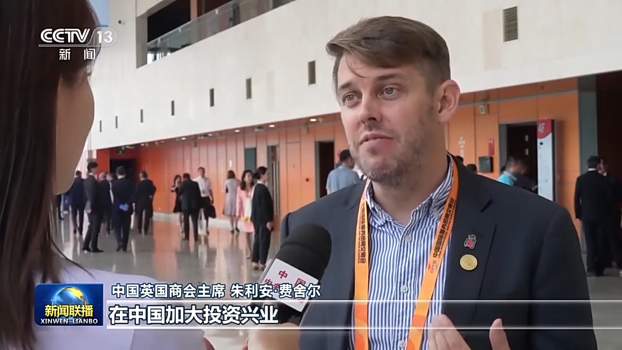 中国英国商会主席 朱利安·费舍尔:尤其是在教育、科技等服务领域,我感到十分兴奋。我们十分愿意看到营商环境进一步改善,在中国加大投资兴业。
