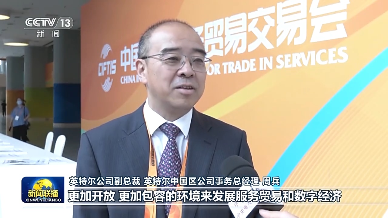 英特尔公司副总裁 英特尔中国区公司事务总经理 周兵:更加开放、更加包容的环境来发展服务贸易和数字经济,这个对于我们来讲是非常积极和鼓舞,我们也期待着能够有更多的机会,能在中国和我们的合作伙伴一起推动这个行业的进一步的发展。